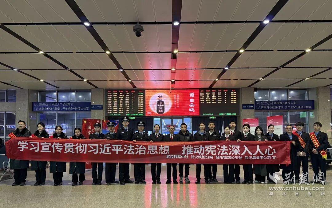 12月4日,武汉铁路中院会同武汉铁路稽查分局、湘铁公安处、武汉局集团公司前往宜昌东站联合开展宪法日宣传活动。活动地点位于宜昌东站二楼候车室。现场精心布置宪法知识宣传栏和条幅,内容涵盖宪法主要重要内容、基本权利等内容。公民义务等,吸引了大量候车旅客驻足观看,让广大旅客更直观地感受到宪法对我们生活方方面面的保障。联合宣传队在展位前积极为旅客和铁路工作人员提供法律咨询服务,耐心细致地解答大家关心的法律问题,并向社会公众发放法律资料,为旅客带来法治课堂,营造学习宪法的浓厚环境。