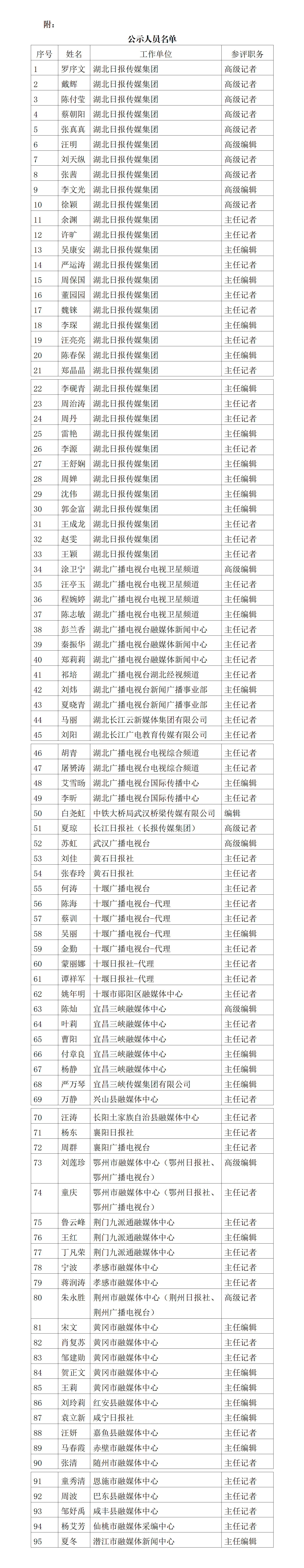湖北省2025年新闻高级职称考试合格人员名单公示